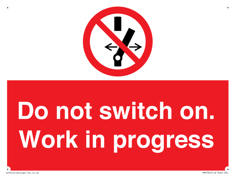 Sign Text: Do not switch on. Work in progress Product Type: Prohibition Safety Signs Dimensions: 200x150mm Material: Aluminium Composite 3mm Orientation: Landscape Text Colour: White More...