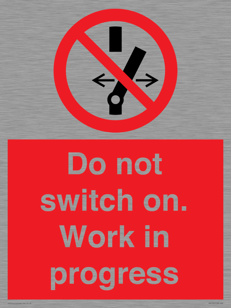 Sign Text: Do not switch on. Work in progress Product Type: Prohibition Safety Signs Dimensions: 300x400mm Material: Stainless Steel Orientation: Portrait Text Colour: White More...