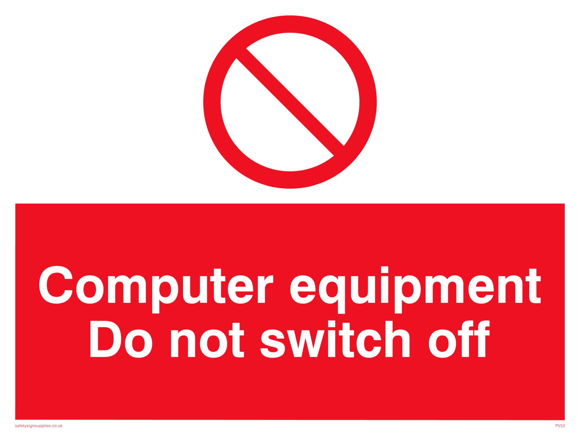 Eco signs give instructions to save energy or offer environmental advice. Computer Equipment signs relate to computer / IT equipment. This sign is large. This sign is approximately equivalent to A3 paper size. Signs in this range are from our maximum choice range. Giving you the most choice of signs available in the UK.