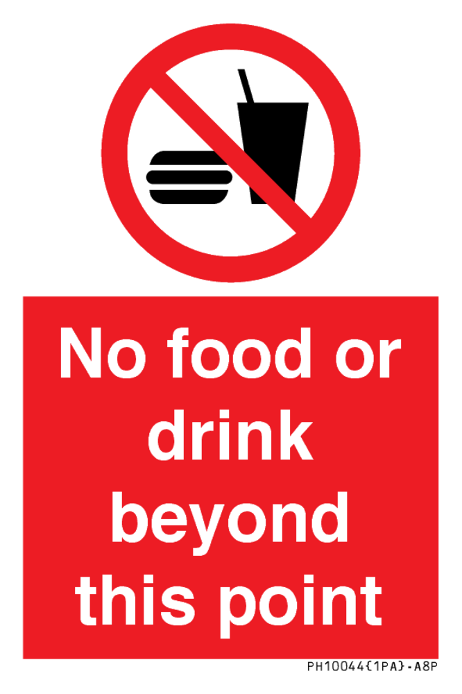 Sign Text: No food or drink beyond this point