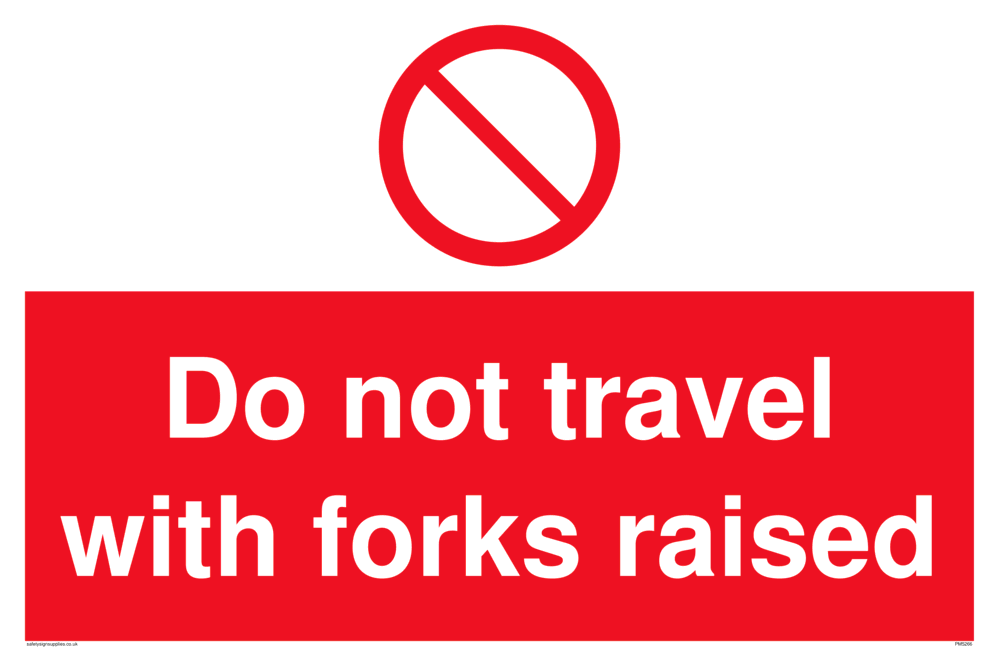 Sign Text: Do not travel with forks raised