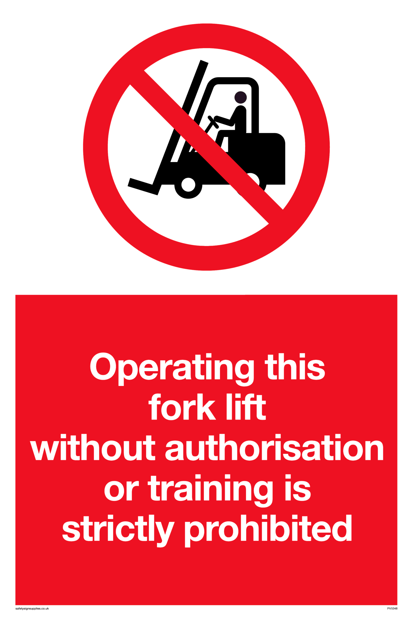 This product is a prohibition safety sign. This type of sign tells you something you must not do.