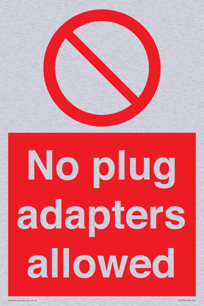 Sign Text: No plug adapters allowed