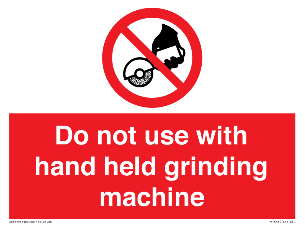 Sign Text: Do not use with hand held grinding machine