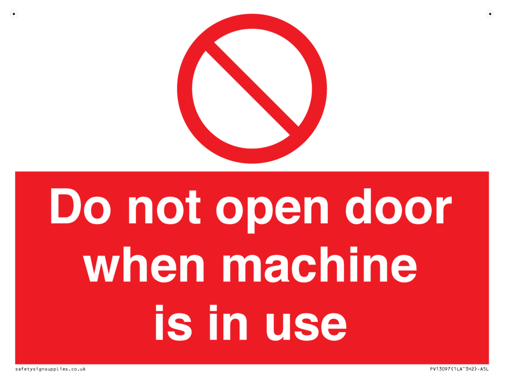 Sign Text: Do not open door when machine in use