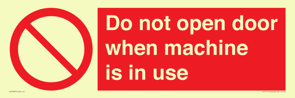 Sign Text: Do not open door when machine in use