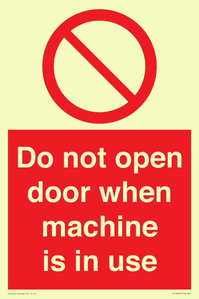 Sign Text: Do not open door when machine in use