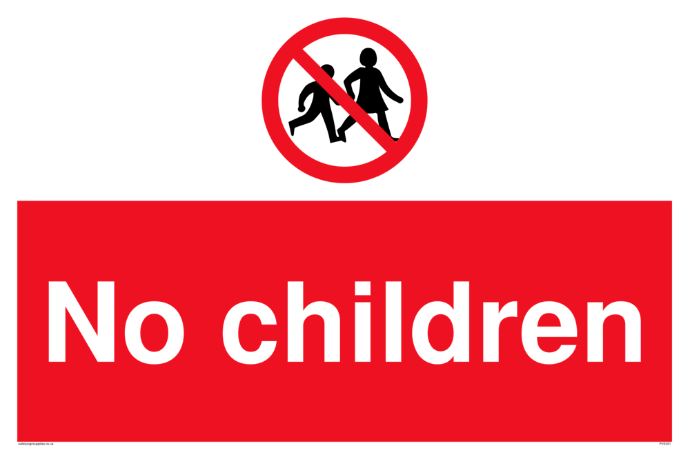 This sign contains a no children symbol - children outline in black with a red circle crossed through.