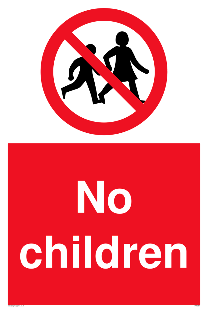 This sign contains a no children symbol - children outline in black with a red circle crossed through.