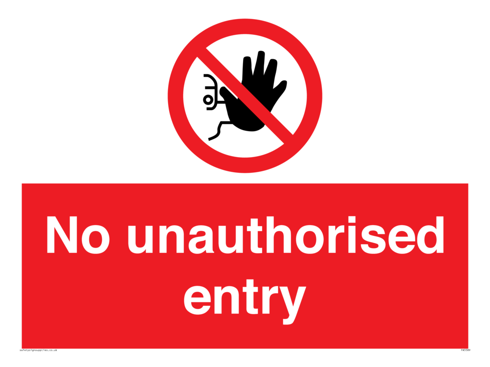 This sign contains a no access symbol - person in black with red circle crossed through.