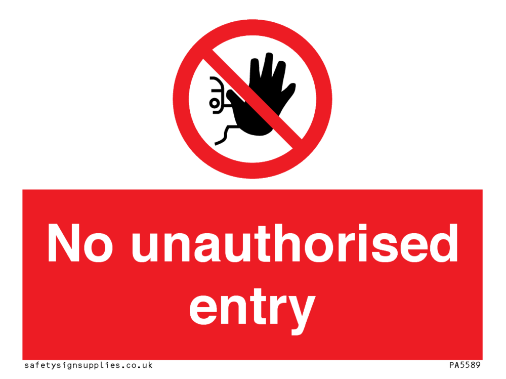 This sign contains a no access symbol - person in black with red circle crossed through.