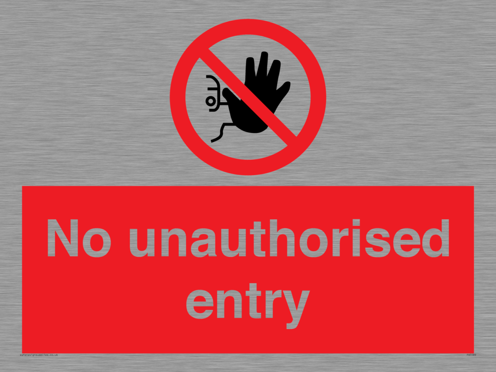 This sign contains a no access symbol - person in black with red circle crossed through.