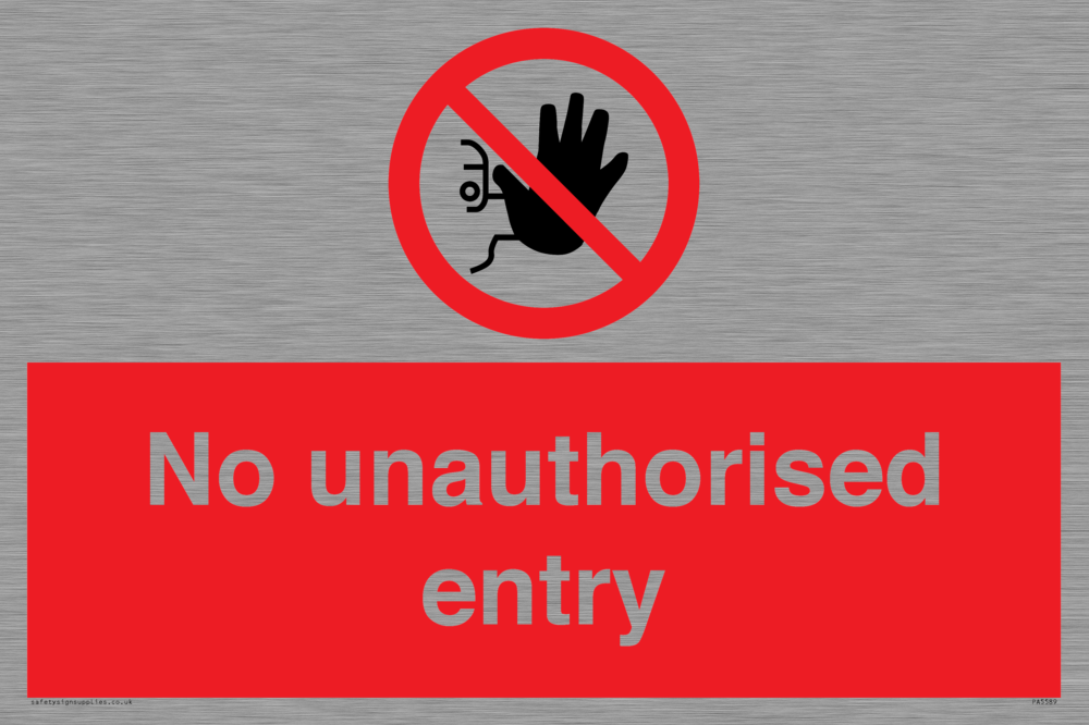 This sign contains a no access symbol - person in black with red circle crossed through.