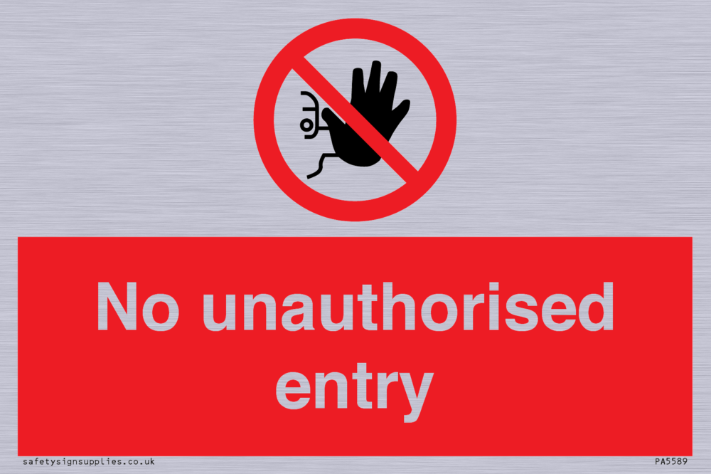 This sign contains a no access symbol - person in black with red circle crossed through.