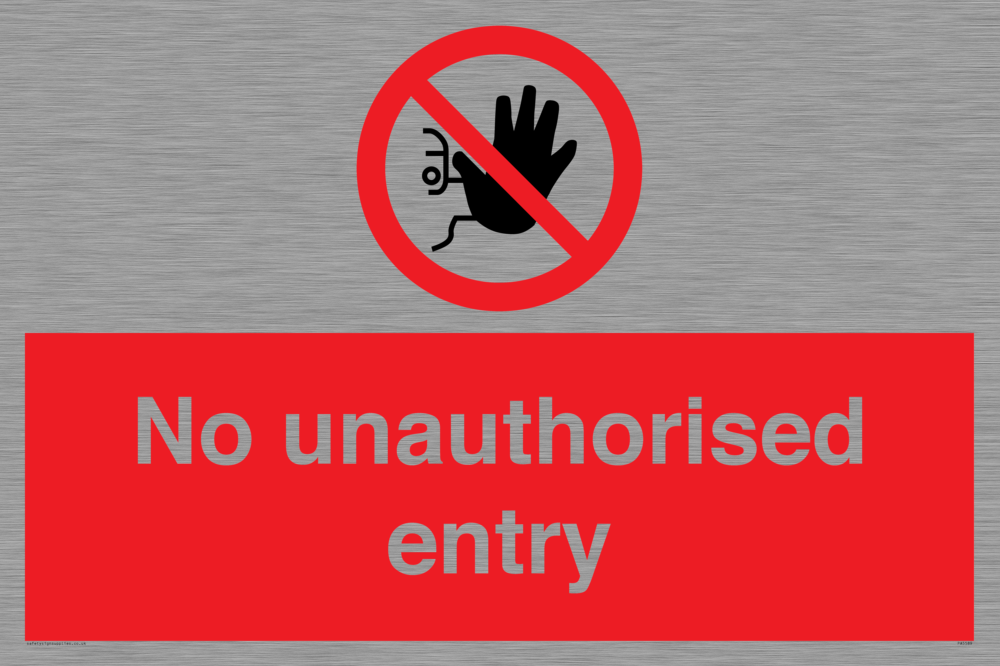 This sign contains a no access symbol - person in black with red circle crossed through.