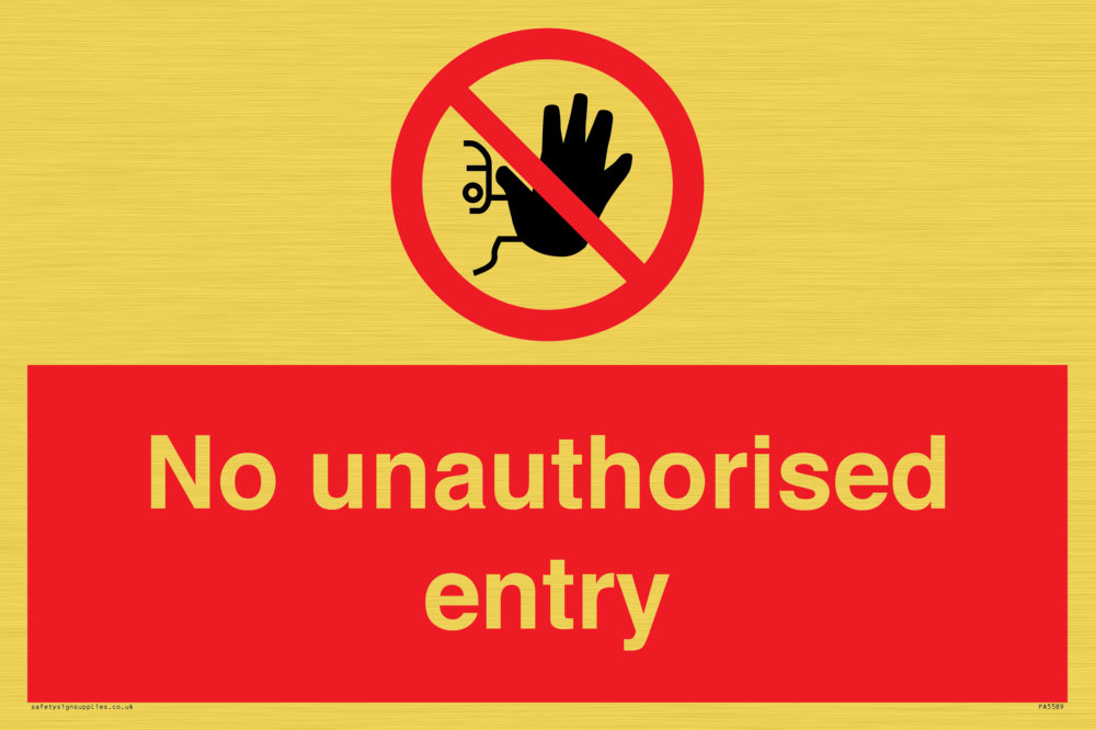 This sign contains a no access symbol - person in black with red circle crossed through.