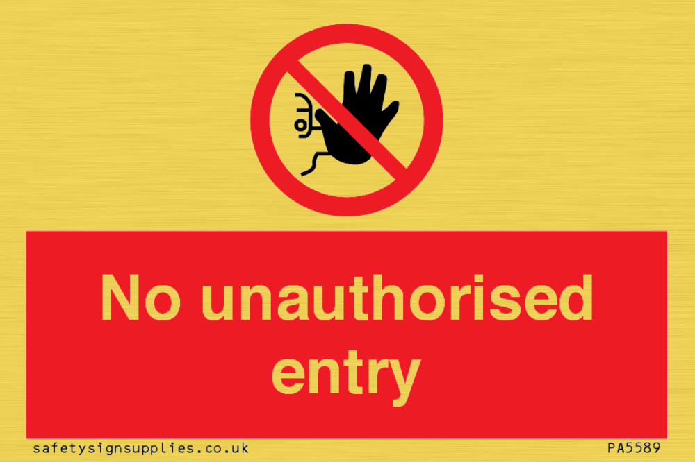 This sign contains a no access symbol - person in black with red circle crossed through.