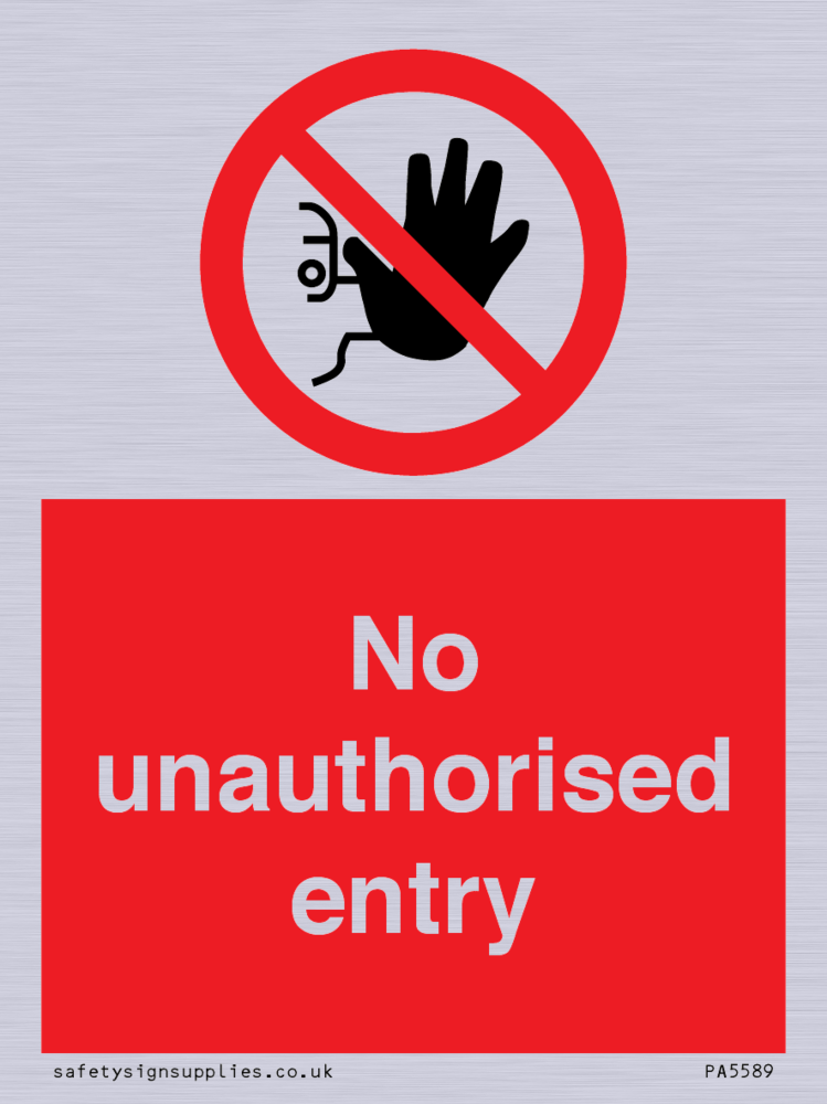 This sign contains a no access symbol - person in black with red circle crossed through.
