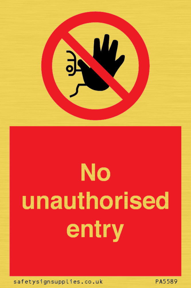 This sign contains a no access symbol - person in black with red circle crossed through.