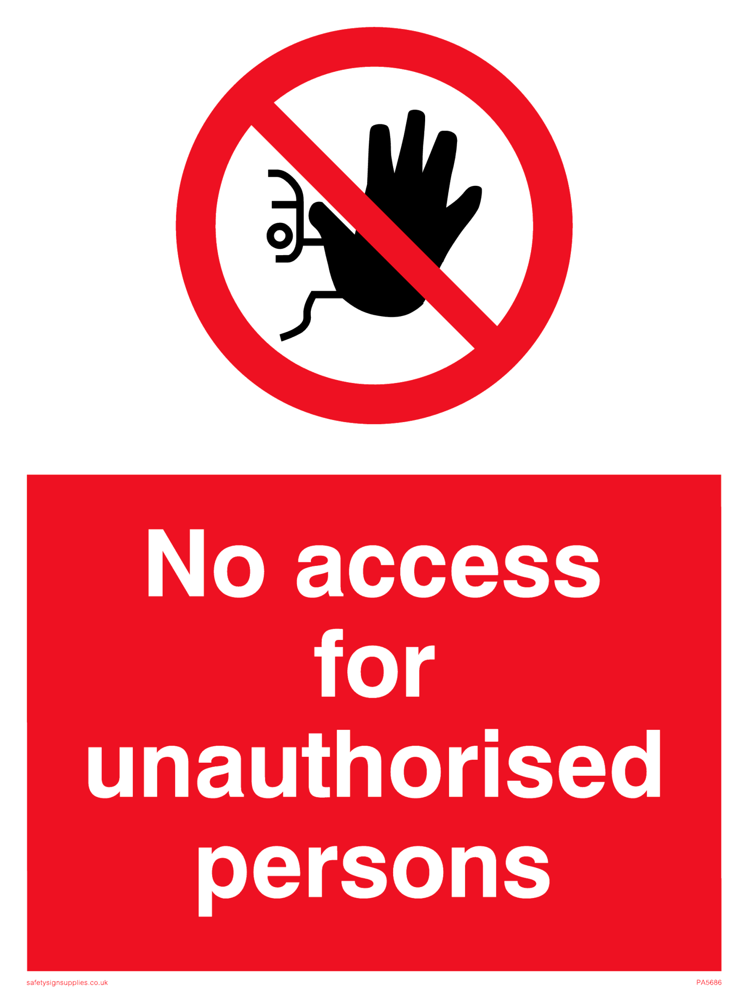 This sign contains a no access symbol - person in black with red circle crossed through.