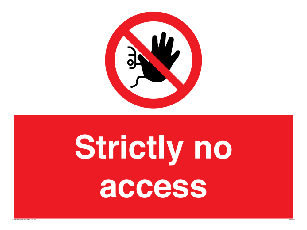 This sign contains a no access symbol - person in black with red circle crossed through.