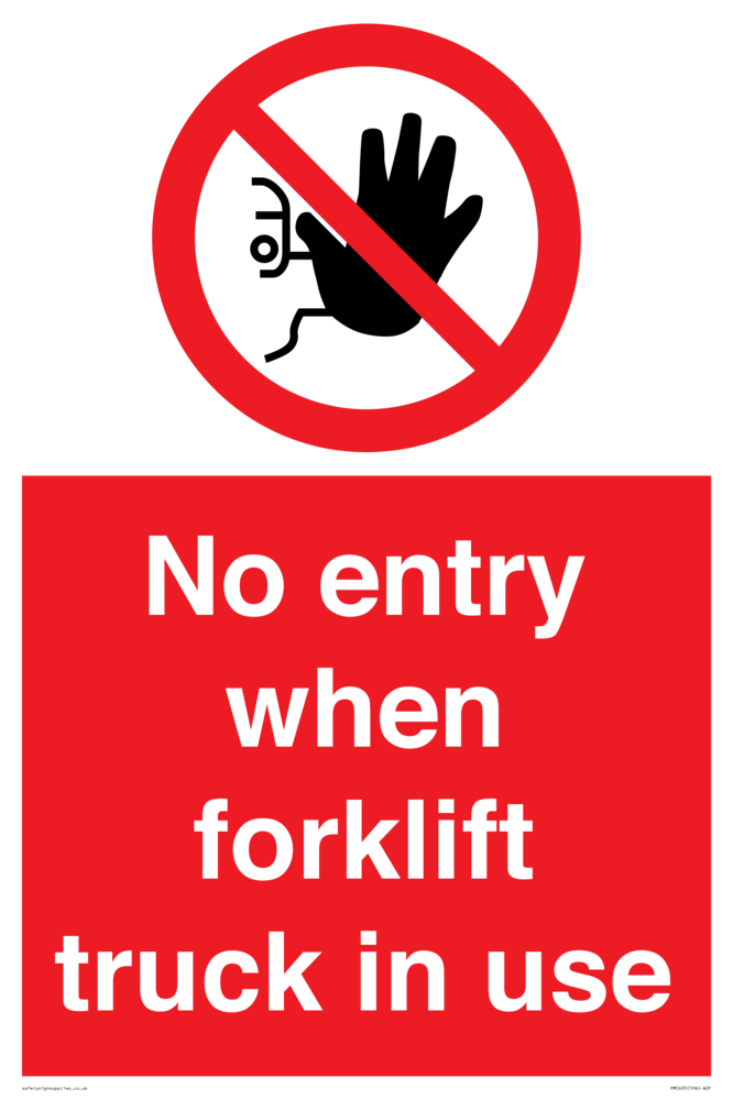 Sign Text: No entry when forklift truck in use