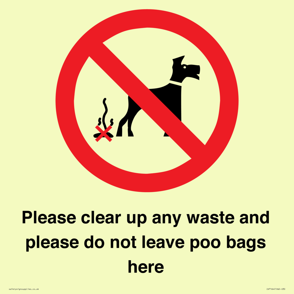 Sign Text: Please clear up any waste and please do not leave poo bags here