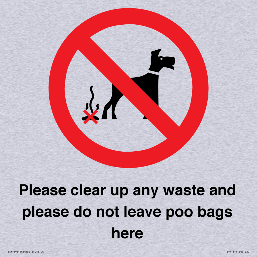 Sign Text: Please clear up any waste and please do not leave poo bags here