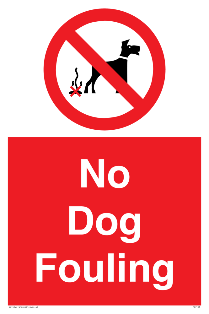 This sign has a "No Dog Fouling" symbol. This symbol is normally used to prohibit people allowing dog poop to be left on the pavement or to encourage people to clear up after their dogs.