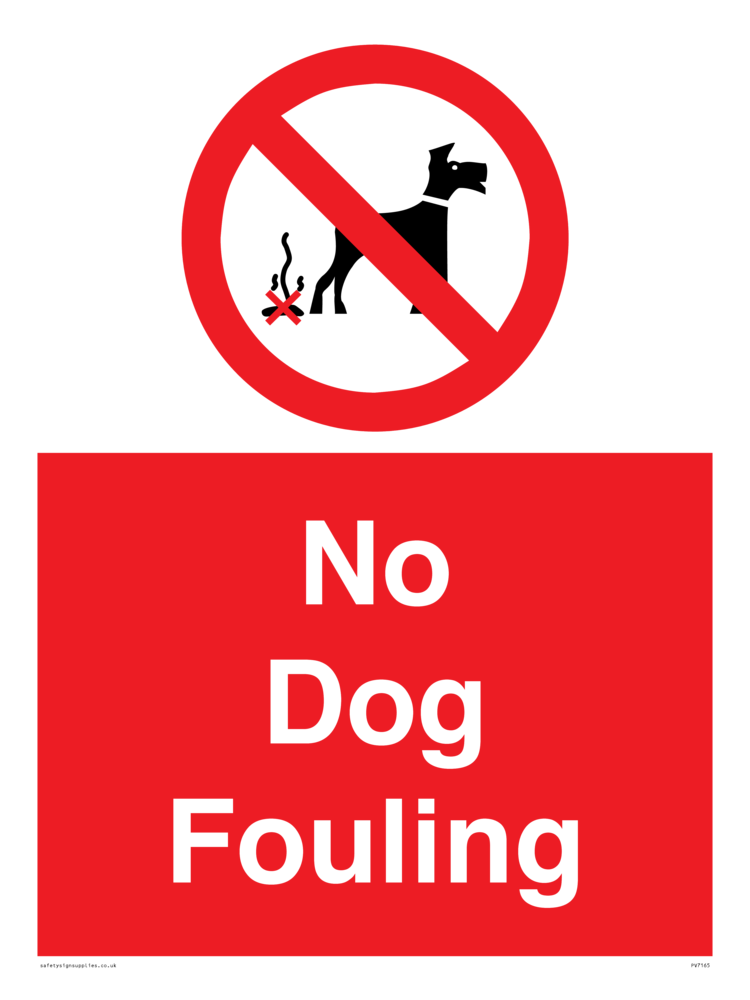 This sign has a "No Dog Fouling" symbol. This symbol is normally used to prohibit people allowing dog poop to be left on the pavement or to encourage people to clear up after their dogs.