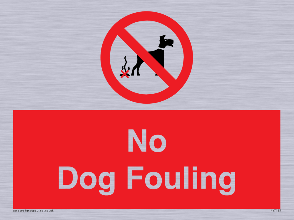 This sign has a "No Dog Fouling" symbol. This symbol is normally used to prohibit people allowing dog poop to be left on the pavement or to encourage people to clear up after their dogs.