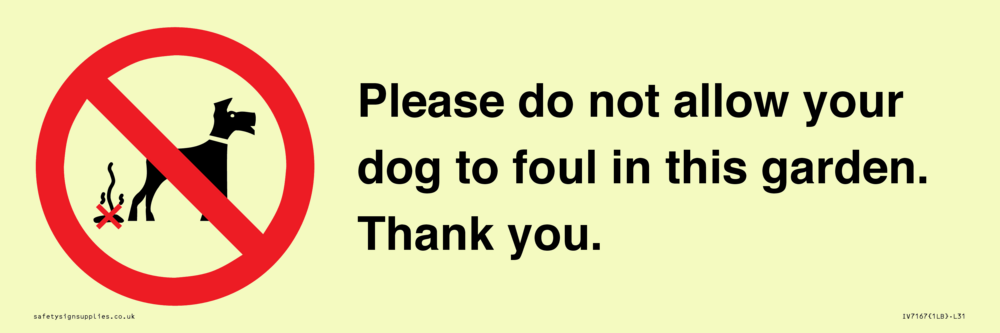 Sign Text: Please do not allow your dog to foul in this garden.
