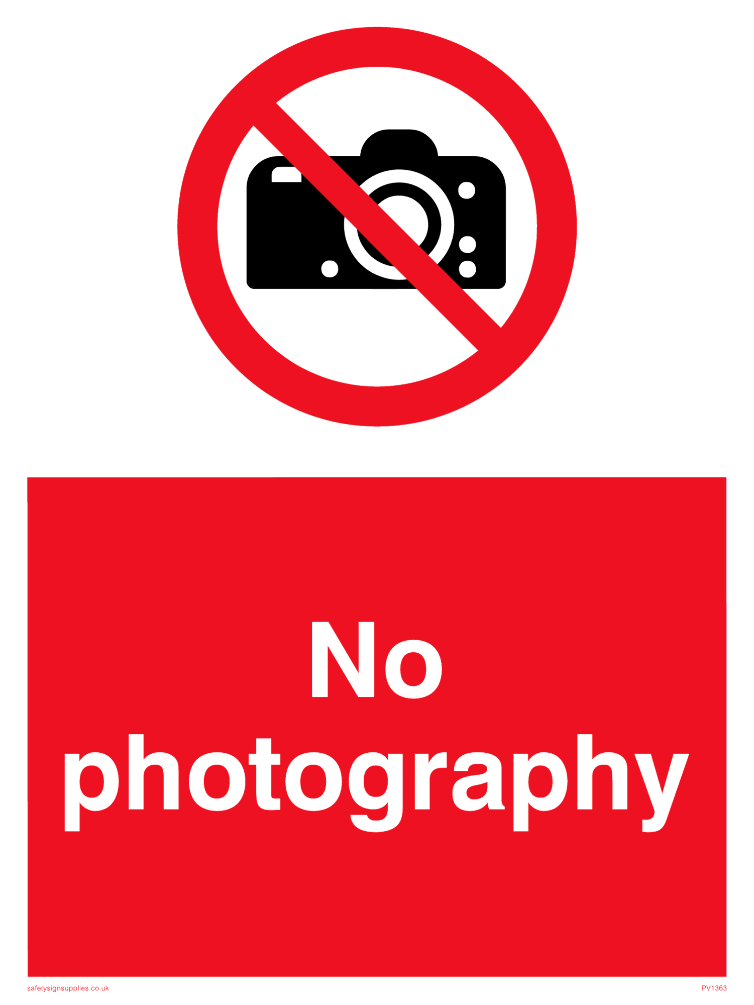 This sign contains a no photography symbol. It shows a camera, crossed through by a prohibition circle.