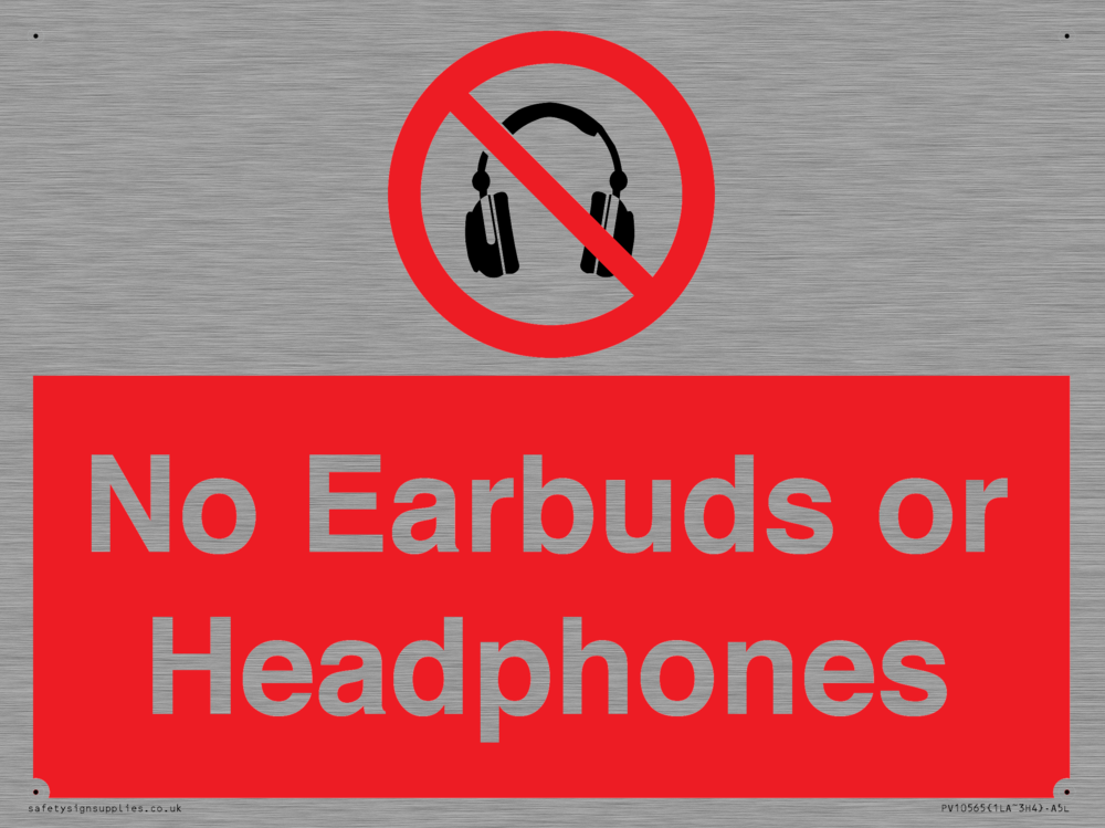 Sign Text: No Earbuds or Headphones