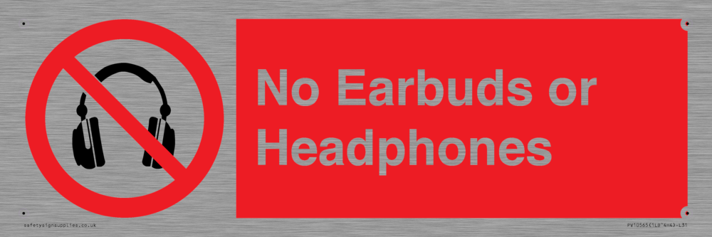 Sign Text: No Earbuds or Headphones