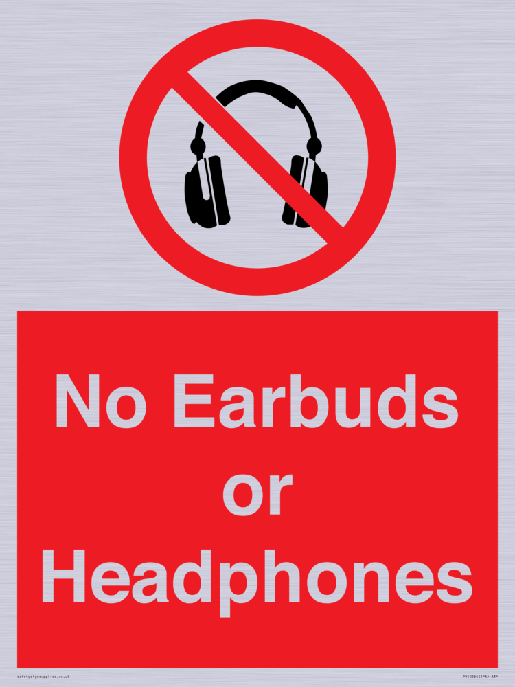 Sign Text: No Earbuds or Headphones