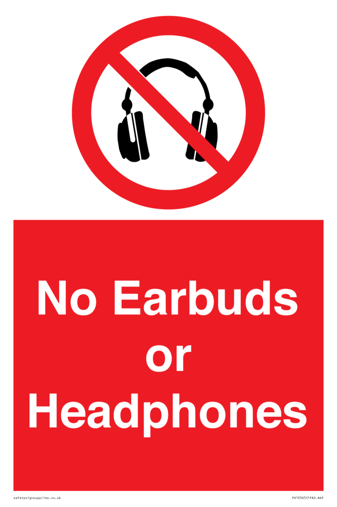 Sign Text: No Earbuds or Headphones