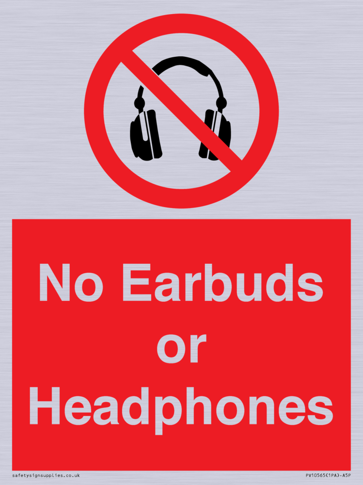 Sign Text: No Earbuds or Headphones