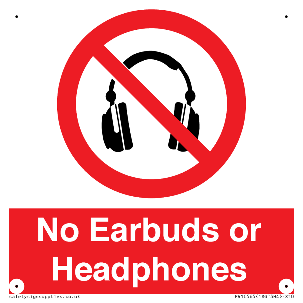 Sign Text: No Earbuds or Headphones
