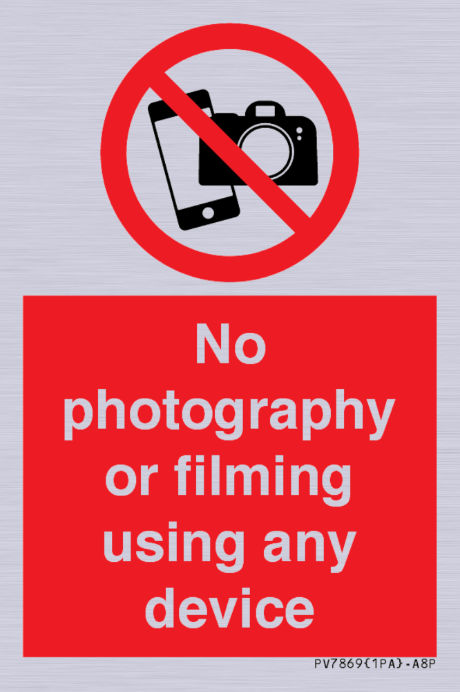 Sign Text: No photography or filming using any device