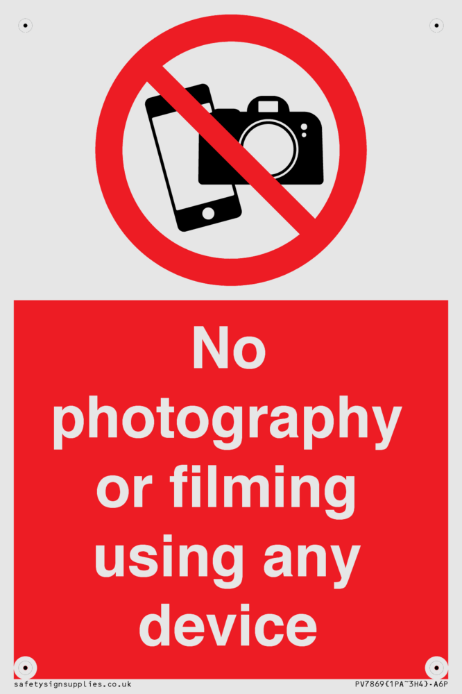 Sign Text: No photography or filming using any device