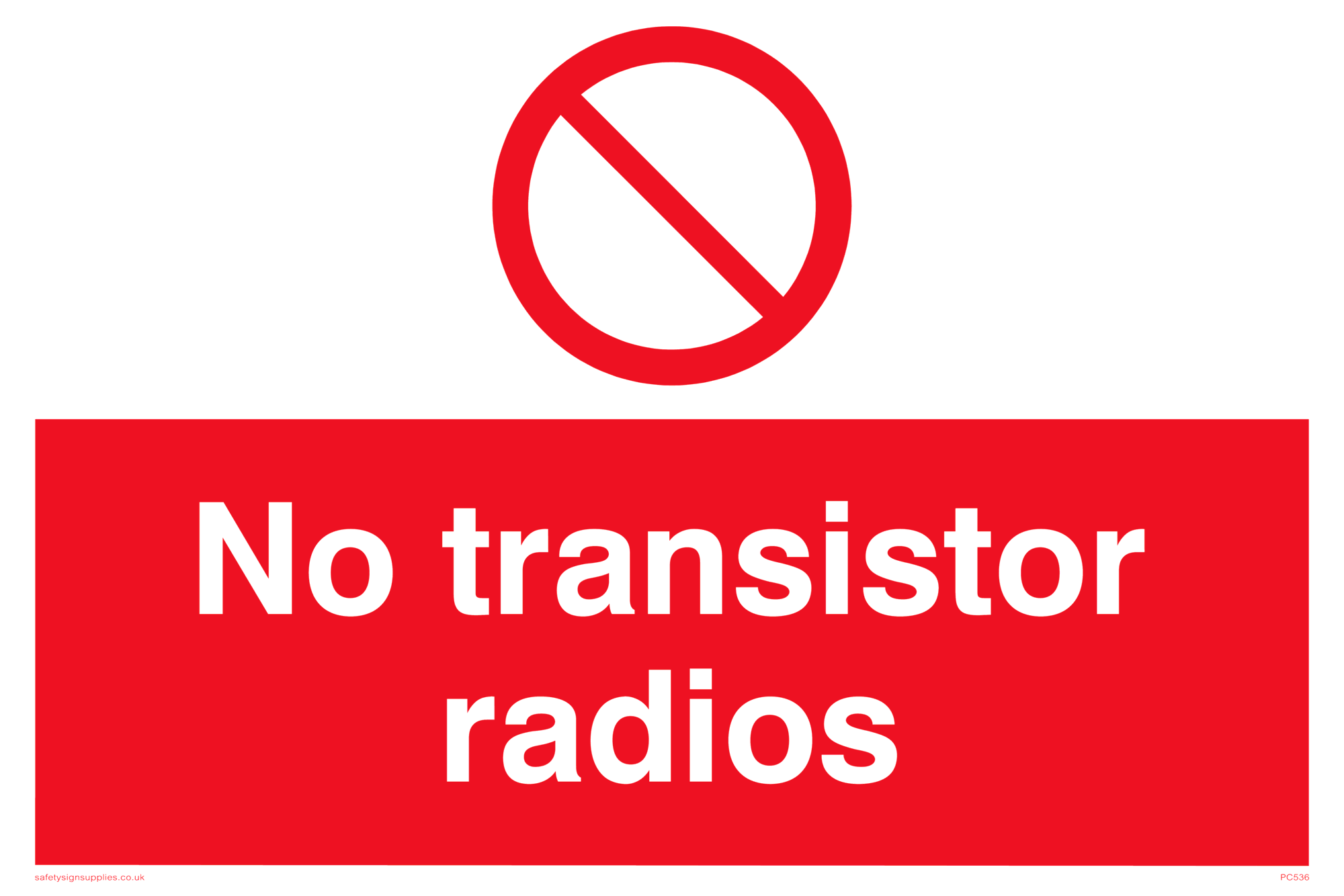 Radio signs relate to the use of radios. Construction Signs are used on building and construction sites to show safety policy requirements or hazards. This sign is large. This sign is approximately equivalent to A2 paper size.
