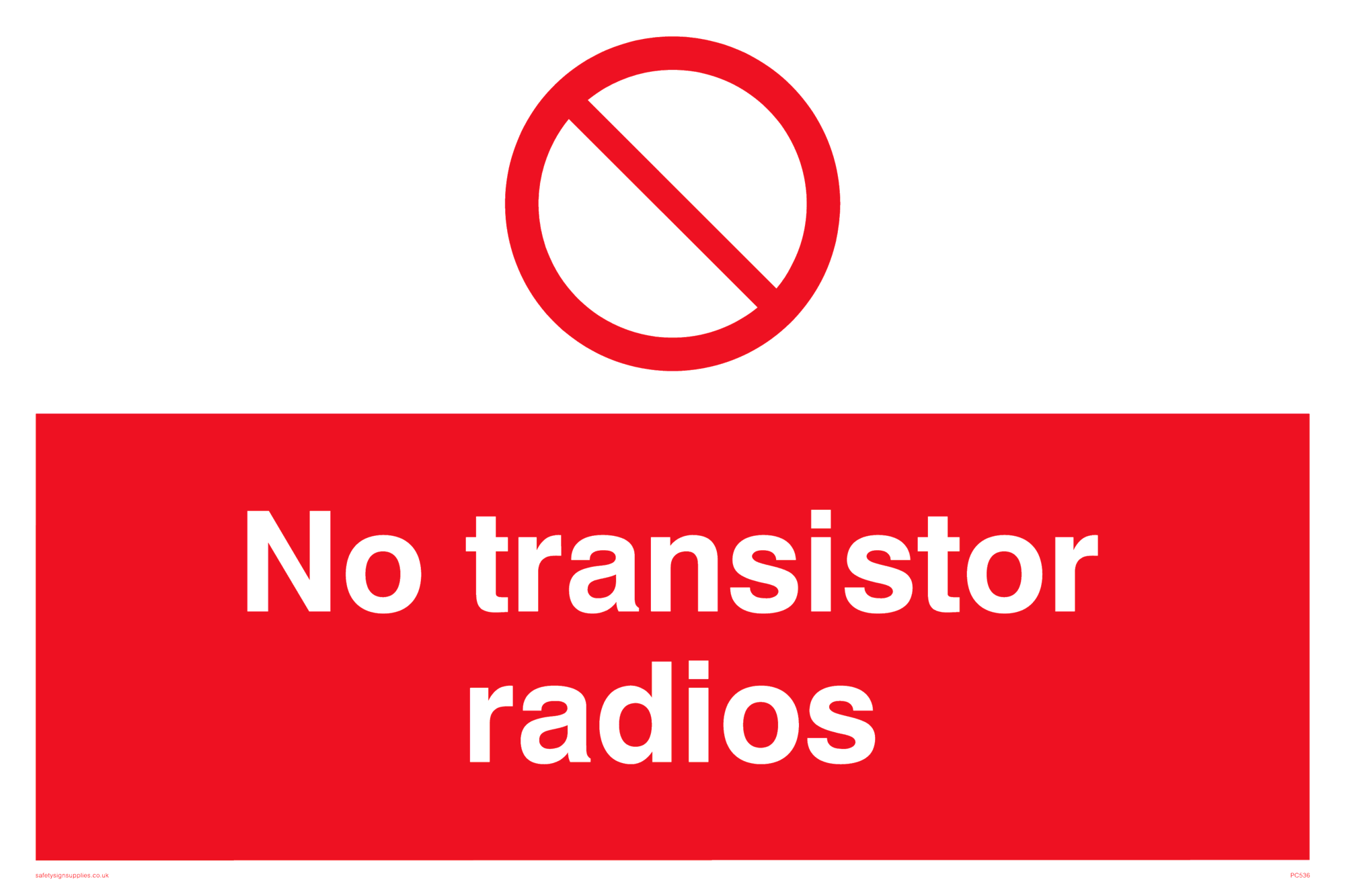 Construction Signs are used on building and construction sites to show safety policy requirements or hazards. Radio signs relate to the use of radios. This sign is medium sized. This sign is approximately equivalent to A4 paper size. Signs in this range are from our standard range.