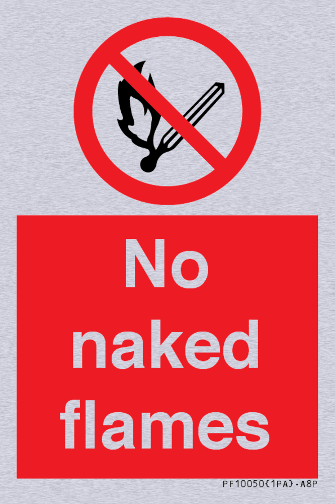 ISO 7010-P003 Prohibition: No open flame; Fire, open ignition source and smoking prohibited