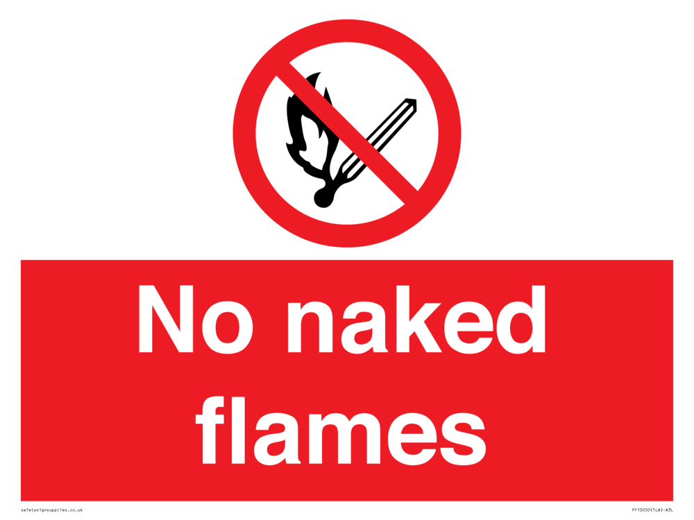 ISO 7010-P003 Prohibition: No open flame; Fire, open ignition source and smoking prohibited