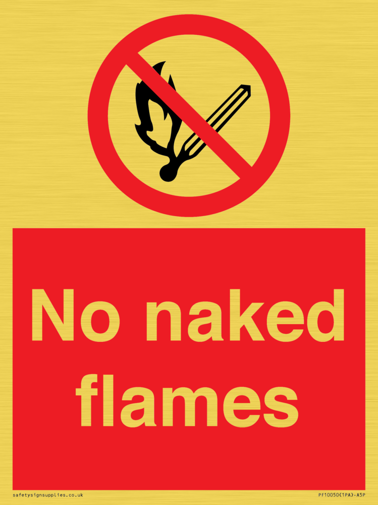 ISO 7010-P003 Prohibition: No open flame; Fire, open ignition source and smoking prohibited