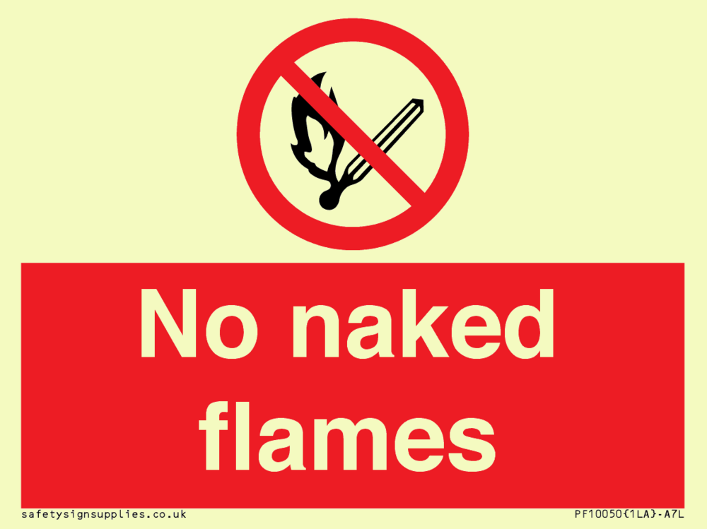 ISO 7010-P003 Prohibition: No open flame; Fire, open ignition source and smoking prohibited
