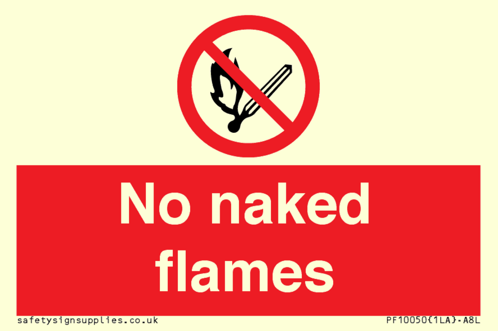 ISO 7010-P003 Prohibition: No open flame; Fire, open ignition source and smoking prohibited