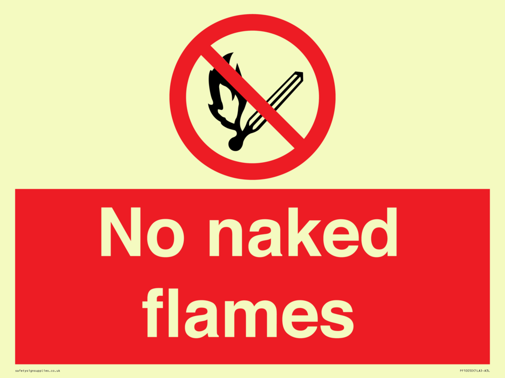 ISO 7010-P003 Prohibition: No open flame; Fire, open ignition source and smoking prohibited