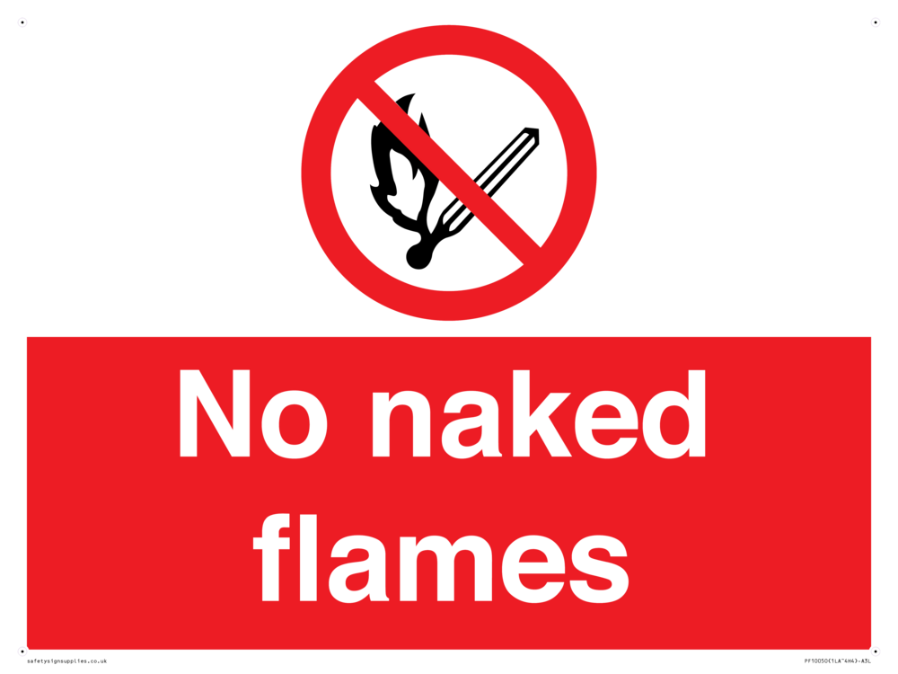 ISO 7010-P003 Prohibition: No open flame; Fire, open ignition source and smoking prohibited